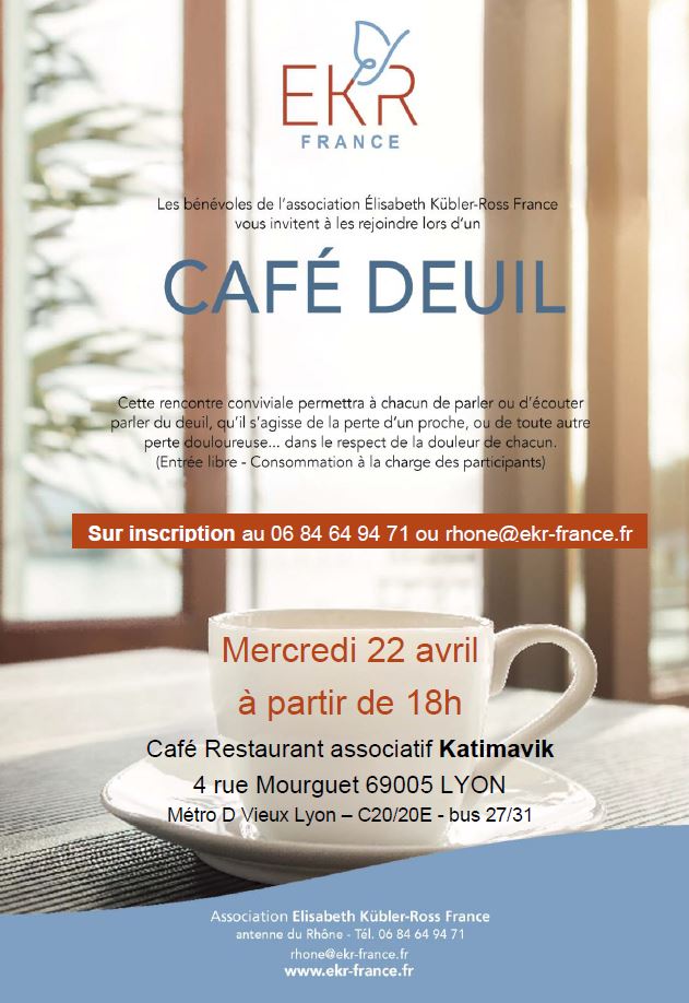Les bénévoles de l’antenne du Rhône organisent un café deuil, le mercredi 22 avril, à partir de 18h.